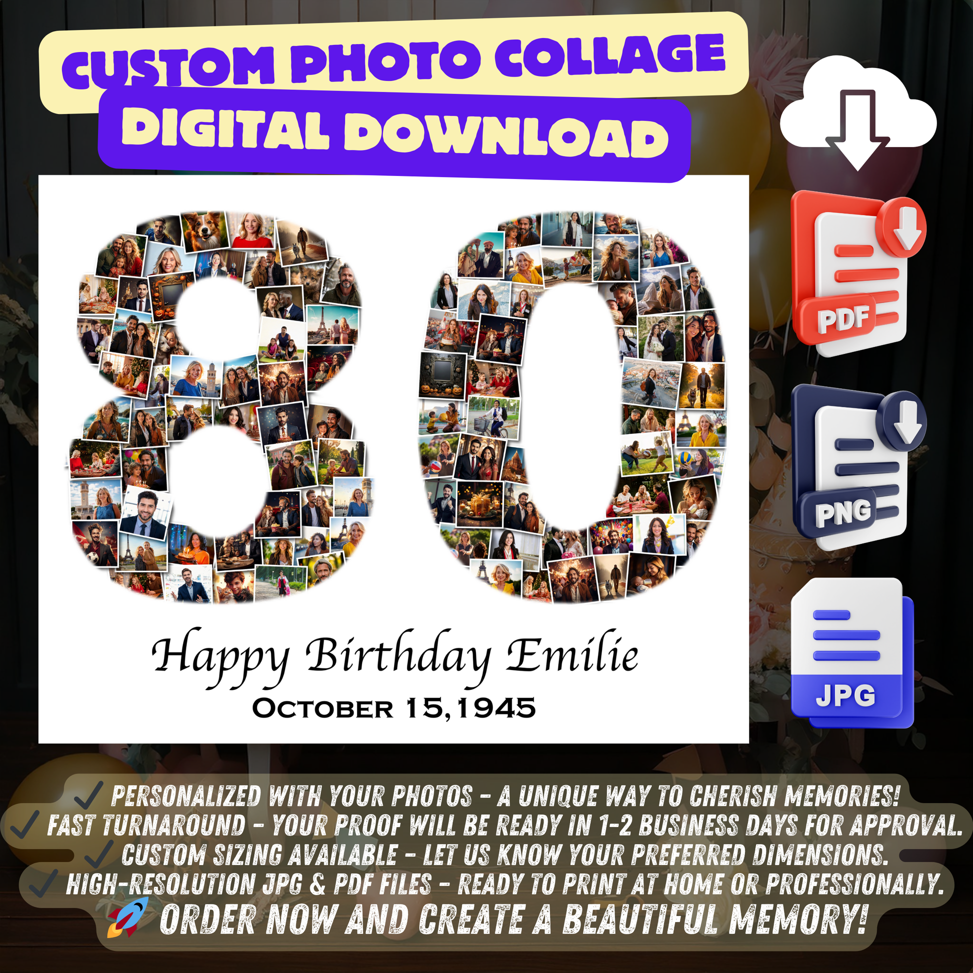 Benutzerdefinierte 80. Geburtstagszahl Fotocollage