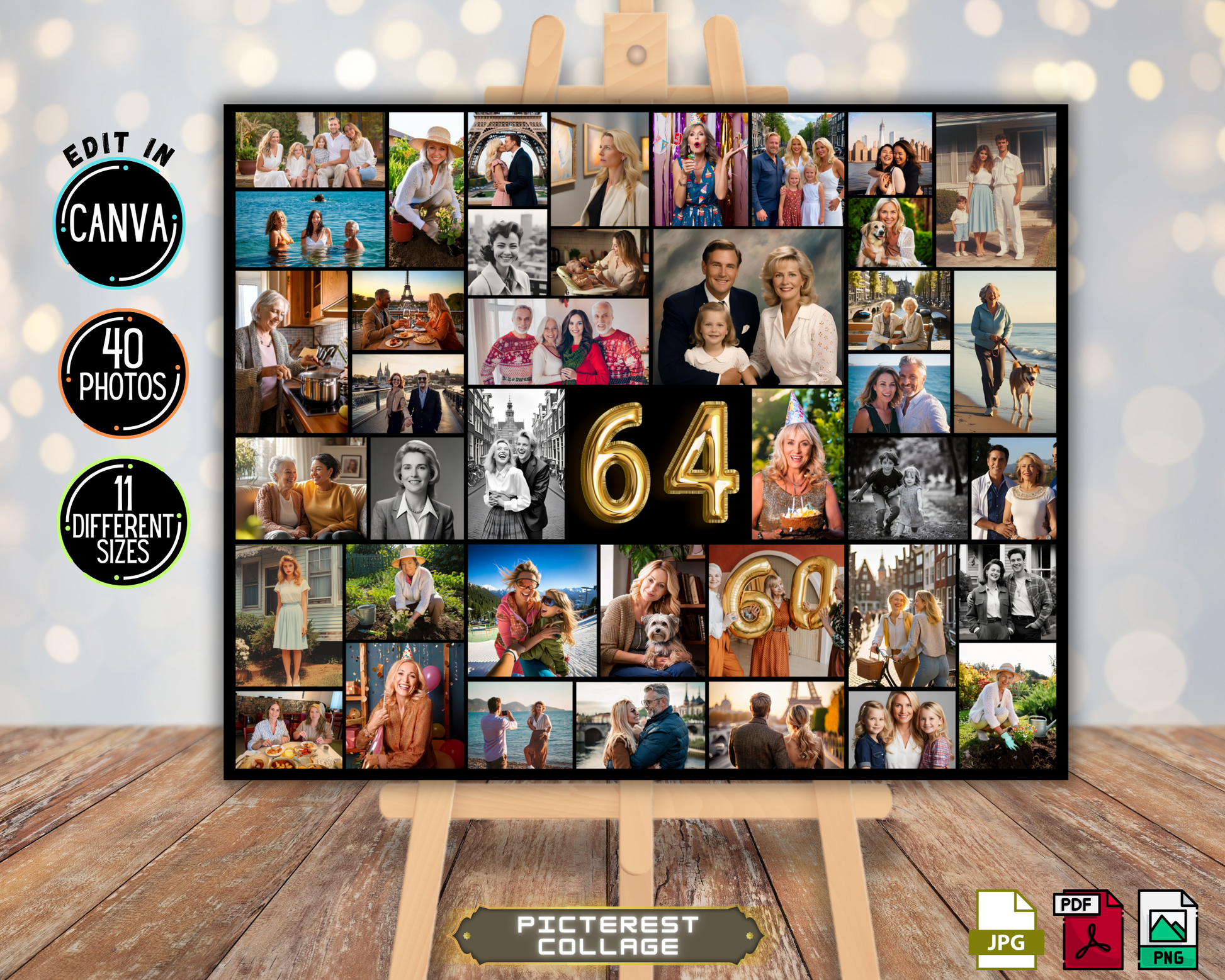 Editable 64th Birthday Photo Collage Canva Template PC0146