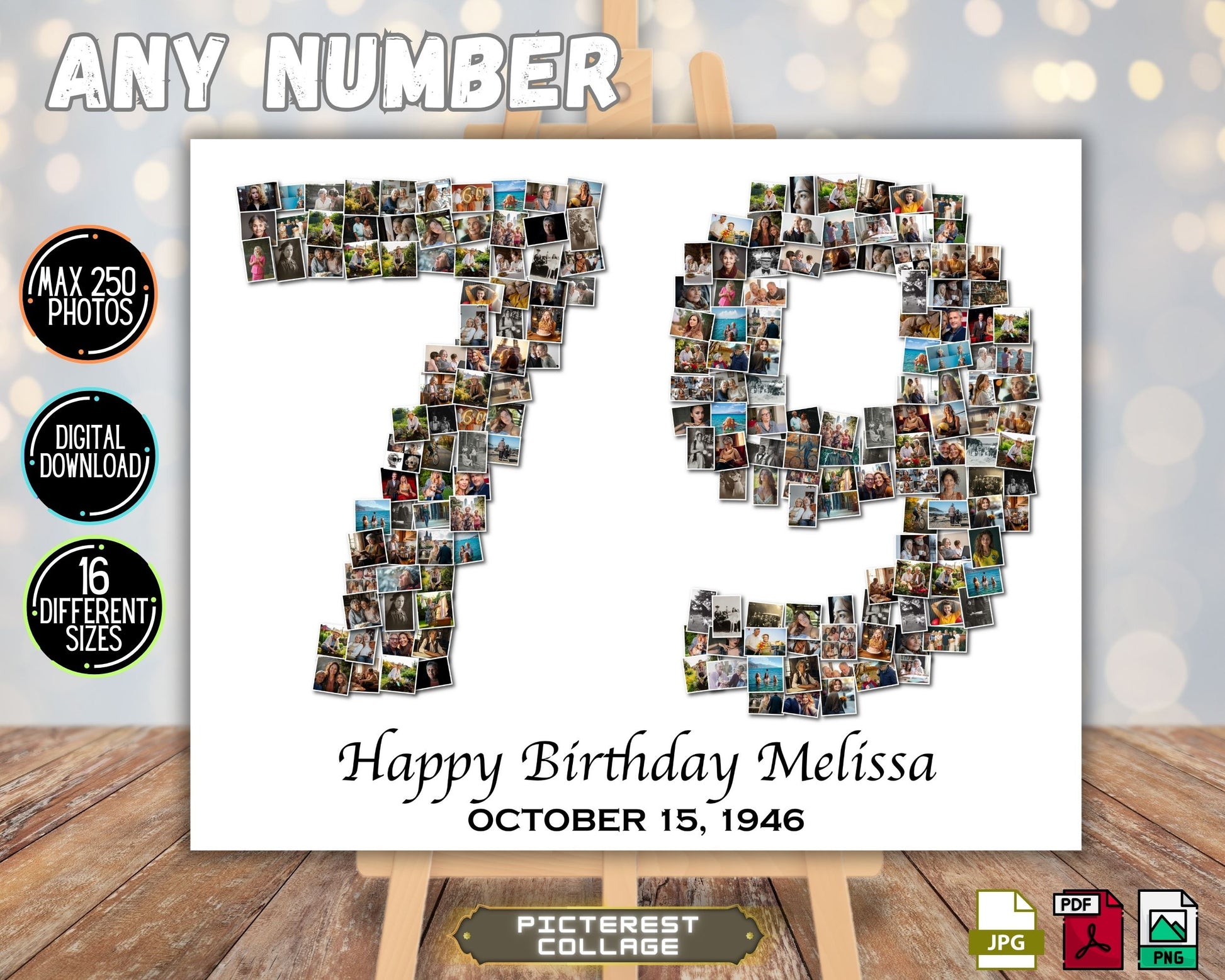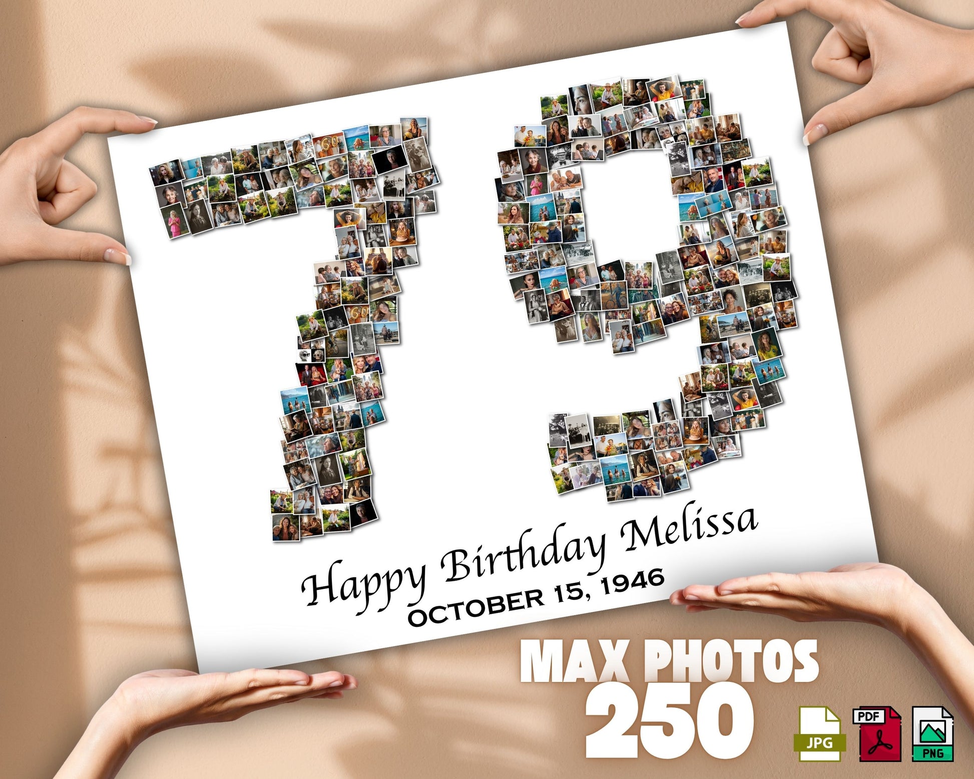 Looking for a truly memorable 79th birthday gift? Our Custom 79th Birthday Number Photo Collage brings together your most cherished memories into a unique and meaningful artwork.