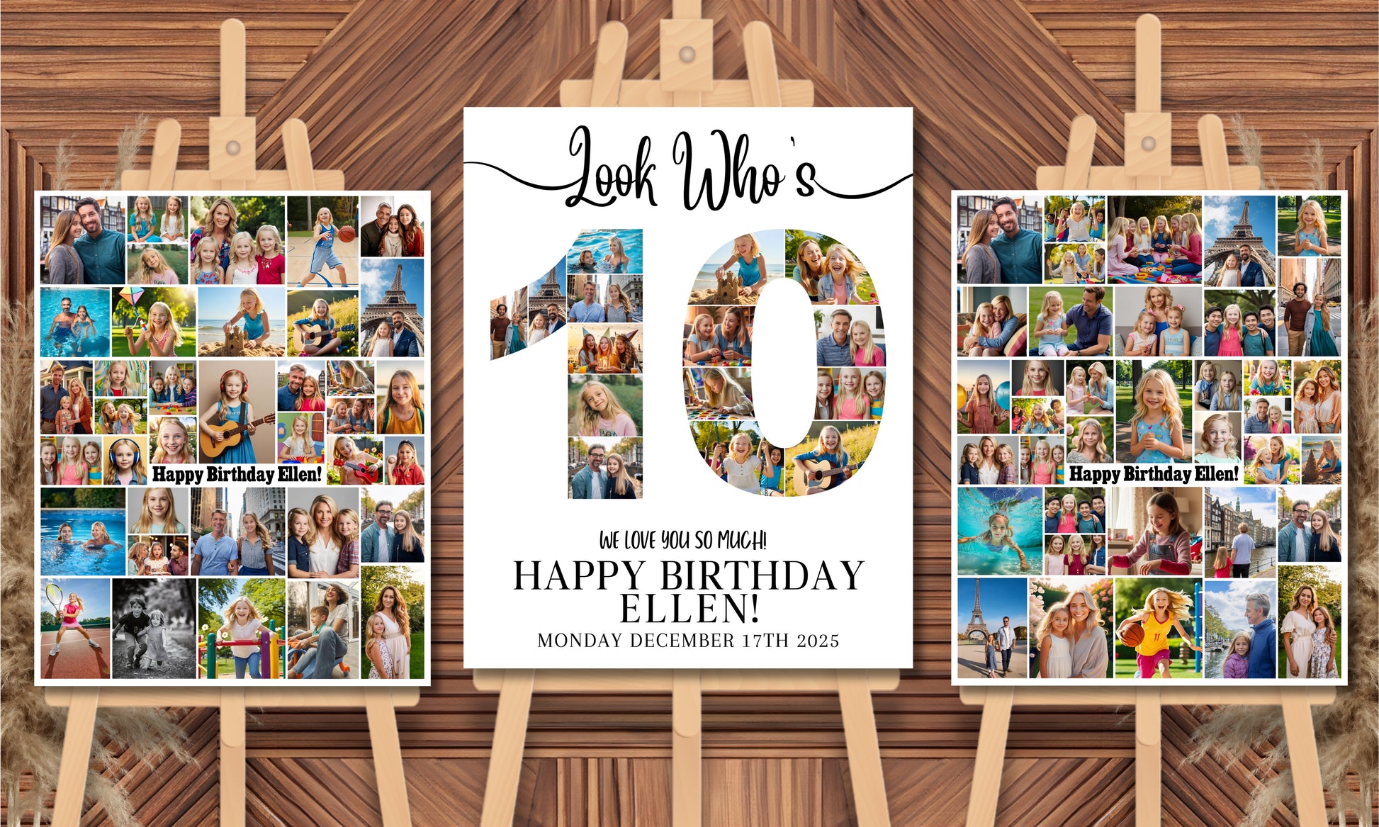 Editable 10th Birthday Photo Collage & Number Poster Template Bundle for Canva PS0366